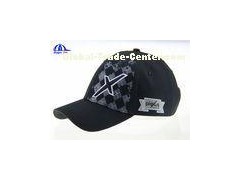 100% Cotton 6 Panel Black baseball Caps with Printing and Embroidery On Front